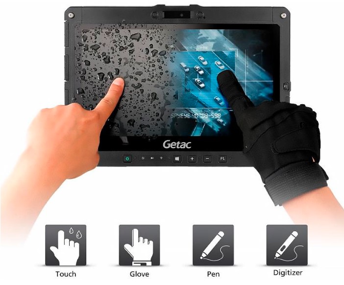Модель K120 також оснащена 12,5-дюймовим дисплеєм і яскравістю 1200 ніт та технологією Getac для роботи при сонячному світлі, навіть у найяскравіших умовах на вулиці. Декілька методів введення (пальцем, рукавичкою, ручкою та опціональний режим дигітайзера) підвищують ефективність роботи у різних ситуаціях, а інноваційна подвійна конструкція акумулятора з гарячою заміною та заміни батареї без вимикання пристрою та може забезпечити безперебійну роботу 24/7. Для максимального захисту конфіденційних даних модель K120 оснащена потужним набором функцій безпеки та багатофакторною автентифікацією, включаючи технологію Intel vPro, TPM 2.0, високочастотний зчитувач RFID, зчитувач смарт-карток, зчитувач відбитків пальців, а також Windows Hello.