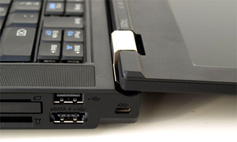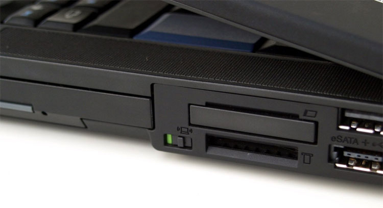 Справа расположились наиболее востребованные интерфейсы: eSATA/ USB та обычный USB 2.0, комбинированный миниджек (3.5 мм), Ultra Bay привод для дисков, кард-ридер 4-у-1, порт ExpressCard34. До слову, тут же находится «кенсингтоновский» замок для защиты від кражи.