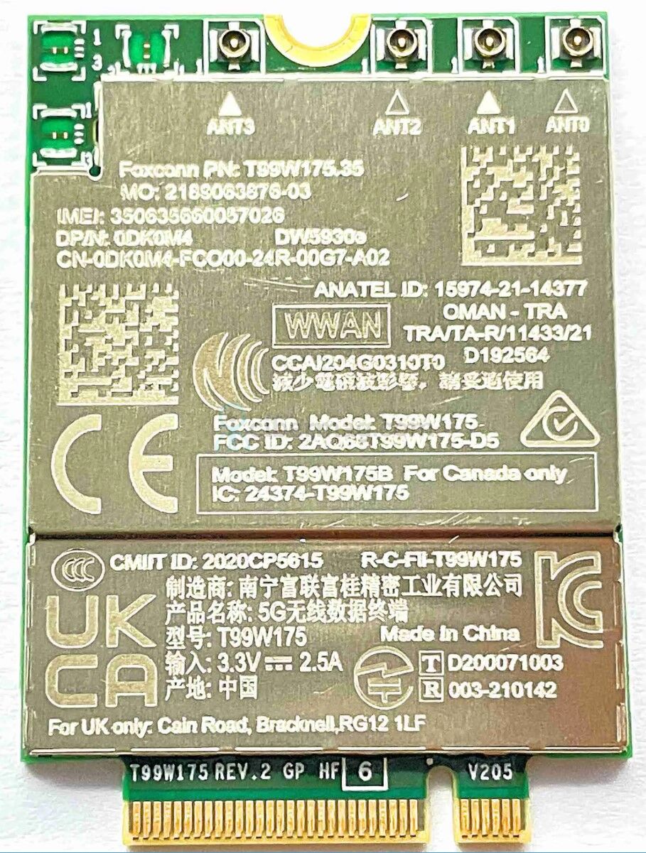 WWAN-карта Foxconn T99W175B — це бездротовий модуль 5G, призначений для бездротового підключення даних для ноутбуків або будь-яких інших пристроїв, сумісних зі слотом PCI Express M.2 Specification 3042 Type Key B. Модуль Foxconn T99W175B — це рішення для карти даних, яке забезпечує бездротове підключення WWAN для протоколів 5GNR (Sub 6G), LTE, UMTS (HSDPA/HSUPA/HSPA+ DC-HSPA+) і GPS/Glonass/Beidou/Galileo у одній апаратній конфігурації.